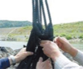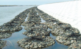 ![]() | 袋型根固め工法とは、合成繊維を使用した網状の袋材に玉石、割栗石等の中詰め材を充填した袋体を河川護岸等に用いる工法です。施工性や環境適正、耐久性および経済性に優れることを特長としています。使用用途も根固め工だけでなく、護岸工、護床工、洗堀防止工、根固めブロックの間詰工、仮設道路の基礎工や工事用堰堤などの仮設構造物など幅広く適用されています。また、河川や道路、内海だけでなく、海岸や港湾・空港といったより自然条件の厳しい場所にも使用され始めています。 |