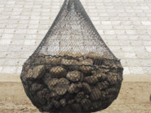 ![]() | 強力な1重網による施工性従来の2重網に対して、網糸一本を太くすることで1重網でも対応できるようになりました。2重網よりも嵩張らず、施工時の取り回しが容易です。環境に配慮環境対応型の再生ポリエステル繊維を使用したユニットと自然素材の中詰め材を使用するため、施工後の環境への影響が極めて少なく作業も簡単です。 |